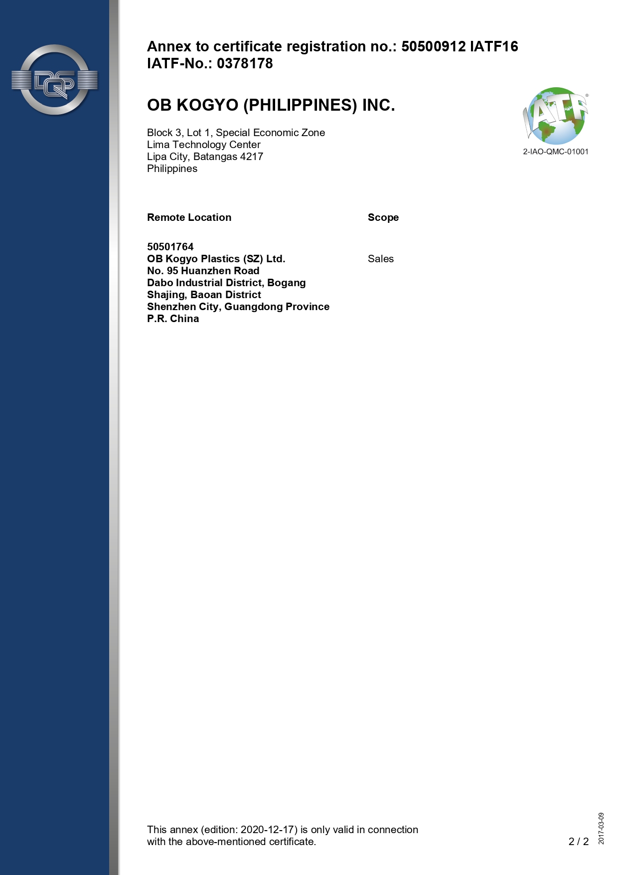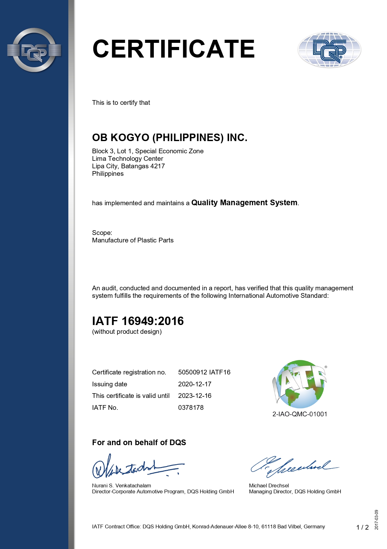 国際自動車タスクフォース のIATF16949:2016認証を取得致しました。